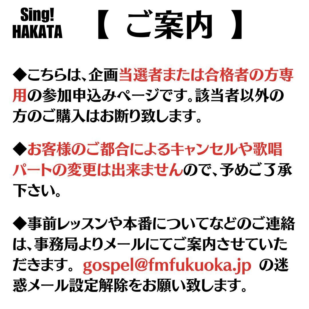 ※事前レッスンや本番についてなど、参加者の皆様へのご連絡はSing!HAKATA事務局より、直接メールにてご案内させていただきます。右記アドレス([email protected])の迷惑メール設定解除をお願いします。